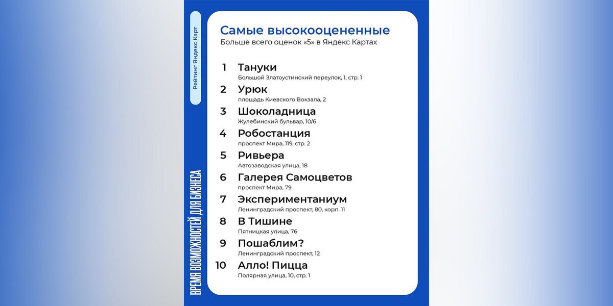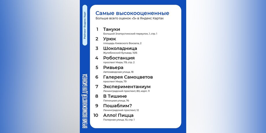 Город"Зима в Москве" и "Яндекс Карты" представили рейтинг компаний сферы обслуживания