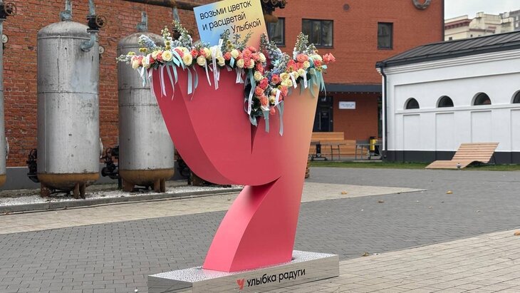 Город"Улыбка радуги" установила цветочный арт-объект в честь фирменного стиля