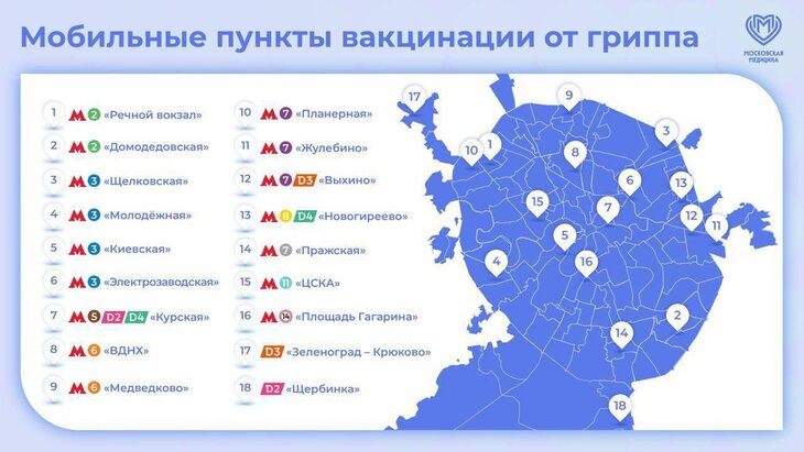 Прививку можно сделать около 18 станций метрополитена, МЦК и МЦД. Врач проводит обязательный осмотр, а после выдает рекомендации и сертификат.