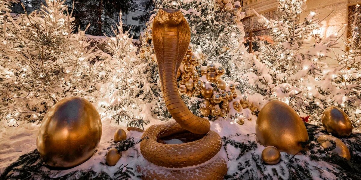 Вместе с тем главной идеей зимнего оформления входной группы ресторана Butler стал символ этого года по восточному календарю. Золотую фигуру змеи установили рядом с большой елью, украшенной шарами. Гендиректор ресторана Анастасия Данилова назвала это ярким акцентом, на фоне которого могли фотографироваться гости.