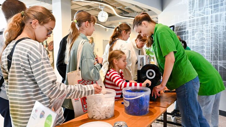 На первом этаже гостей приглашают принять участие в переработке пластика и создать себе памятные сувениры от экоцентра "Сборка". Также здесь будут открыты музей рециклинга и экологичного образа жизни и игротека с настольными играми.