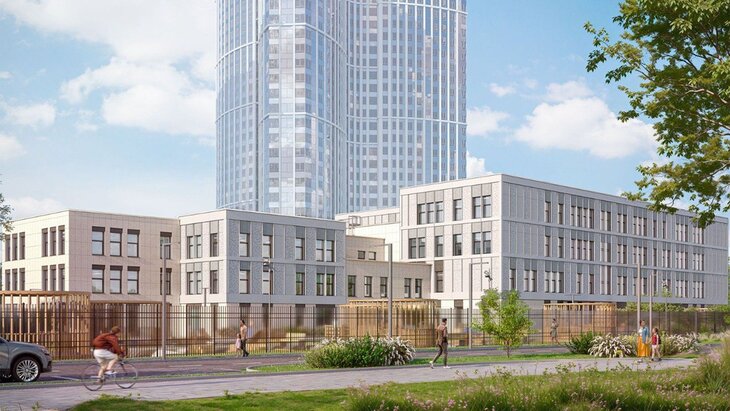 Здание будет располагаться по адресу улица Лобачевского, земельный участок 120/1. Площадь учебного заведения составит более 11 тысяч квадратных метров. В комплекс войдут детский сад на 175 воспитанников и школа для 450 человек.