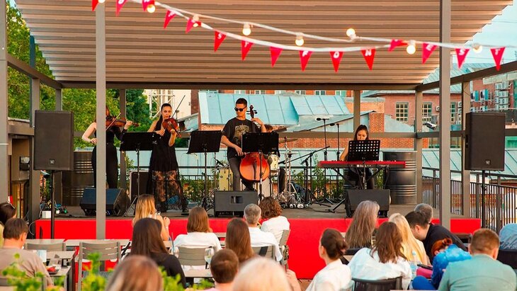 Гостей ждут спортивные тренировки, танцевальные и творческие мастер-классы, а также музыкальные вечера. Например, в ресторане "Спутник" 12 и 13 сентября пройдут открытые концерты. Посетители смогут насладиться европейской кухней, а также послушать каверы и авторские композиции от музыкантов.