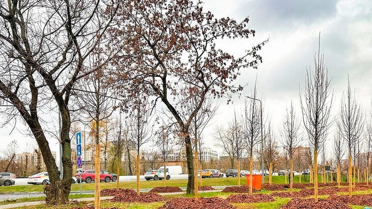 Отмечается, что деревья подбираются такие, которые могут легко адаптироваться к городским условиям и внешне соответствуют облику пространства. Они очищают воздух, защищают жилые постройки от дорожной пыли и создают тень, поэтому очень важно организовать зону между дорогами и домами.