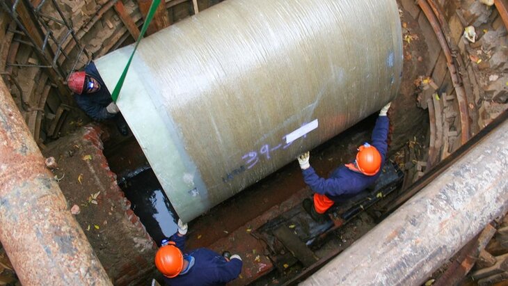 Также была применена бестраншейная технология "труба в трубе", когда новая труба меньшего диаметра помещается внутрь старой. Благодаря такому методу можно восстановить коммуникации не демонтируя их, что минимизирует земляные работы.