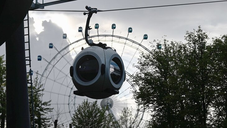 Канатная дорога "Воздушный трамвай" на ВДНХ временно закрыта для посетителей из-за непогоды, сообщает пресс-служба семейного тематического парка "Орион".