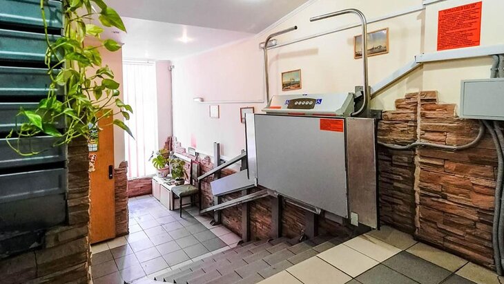 Приоритет отдается вертикальным подъемным платформам, которые могут преодолевать расстояние до 4 метров, если этому соответствуют технические условия. При отсутствии такой возможности в подъезде установят подъемник наклонного типа, который монтируется параллельно лестничному маршу и в сложенном виде не мешает проходу.
