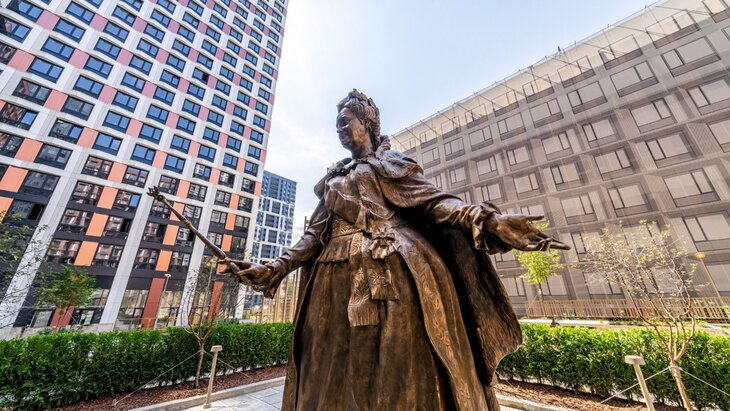 Бронзовую скульптуру российской императрицы Екатерины II доставили в жилой комплекс "Петровский парк II" в Савеловском районе Москвы, сообщает пресс-служба компании "РГ-Девелопмент".