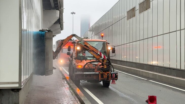 К работе привлечена бригада из шести человек, а также тоннелемоечная и поливомоечная машины с аппаратом высокого давления.