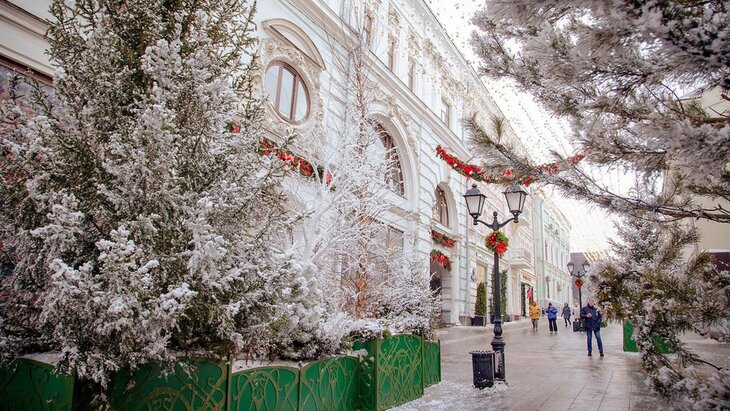 В рамках проекта "Зима в Москве" город украсят оригинальные световые конструкции, тематические арт-объекты и более 10 тысяч вечнозеленых деревьев и кустарников. Всего в праздничные пространства преобразятся около 20 центральных площадок столицы, сообщает портал мэра и правительства Москвы.