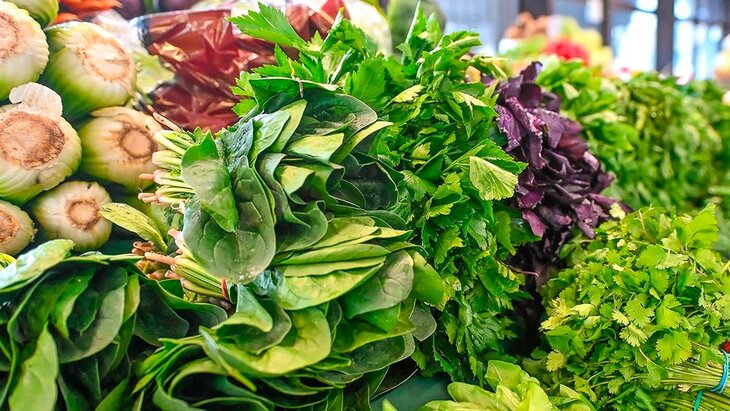 Посетители могут найти в том числе петрушку, укроп, кинзу и зеленый лук. Именно с них начинается сезон свежих овощей. До середины весны эта зелень выращивается в теплицах, что позволяет поставить ее немного раньше.