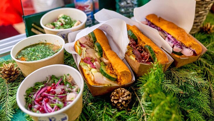 Москвичи и гости города могут попробовать блины с бужениной, ярмарочную колбаску и различные напитки на площадках фестиваля "Путешествие в Рождество". Об этом сообщает портал мэра и правительства столицы.