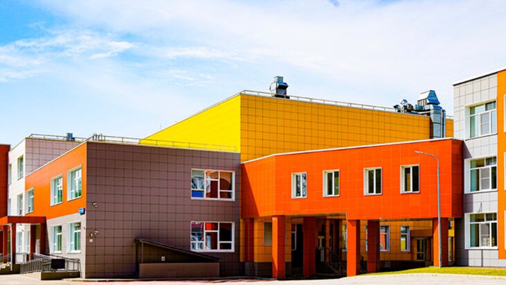 Кроме того, школу оснастили своим пищеблоком полного цикла, появилась обеденная зона. С основным зданием пищеблок соединен на уровне второго этажа. Фасады сооружения выполнены в белом, красном и бежевом цветах из отечественного керамогранита.