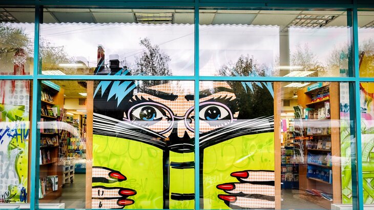 Более того, впервые победители проекта украсили витрины книжных магазинов. В частности, на улице Преображенский Вал была создана композиция в стиле поп-арта и граффити, а на Ленинском проспекте – серия коллажей по мотивам рукописного альманаха Корнея Чуковского "Чукоккала".