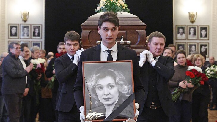 Проститься с артисткой в этот день пришли ее дочь Анна, а также директор театра Кирилл Крок, главный режиссер Анатолий Шульев, народный артист России Евгений Князев, народная артистка РСФСР Людмила Максакова и другие.