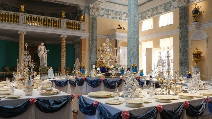 После окончания работ в павильоне снова будет представлена экспозиция "В гостях у графа Шереметева", органично вписанная в окружение. Выставка воссоздает атмосферу праздничного застолья в усадьбе и знакомит с фарфоровыми, фаянсовыми и стеклянными предметами, украшавшими торжества 1795–1801 годов.