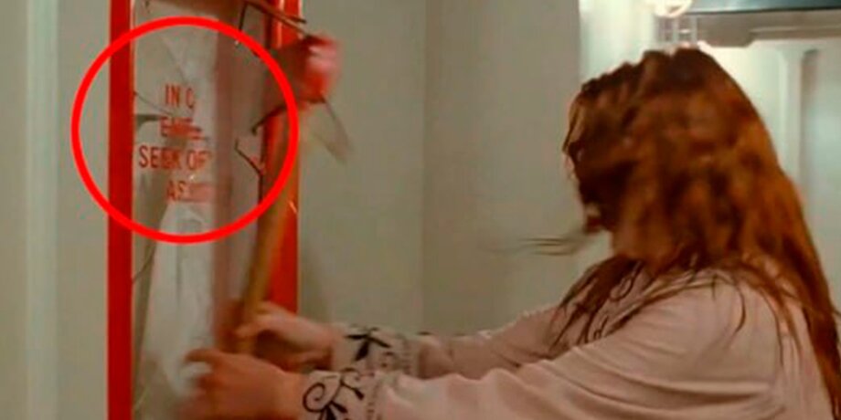 В коридоре лайнера Роза обращает внимание на топор за стеклом. Она осознает, что он может понадобиться ей, чтобы освободить Джека. Героиня разбивает стекло. На следующем кадре видно, что от него остается только один осколок. Однако потом, когда девушка берет топор в руки, осколки защитного стекла оказываются на прежнем месте.