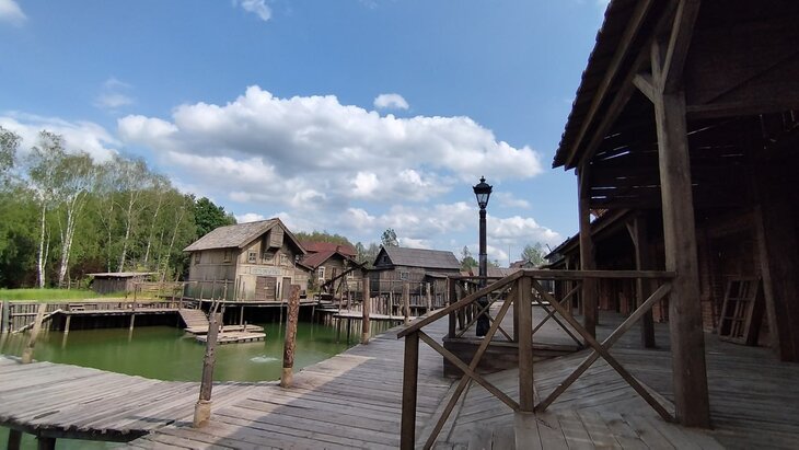 Помимо этого, в кинопарке были созданы десятки других тематических съемочных локаций. Среди них – копия известного театра в усадьбе Архангельское "Театр Гонзаги", Витебский вокзал, "Линия обороны. Окопы времен Великой Отечественной войны" и "Палаты князя Андрея". Авторы фильма раскроют, из чего были сделаны масштабные декорации, а также кто и как воссоздает атмосферу разных эпох "Москино".