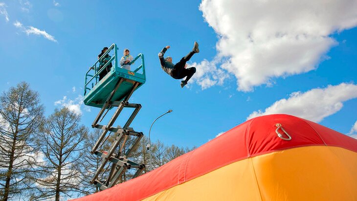 Гости увидели рождение эпизодов, от которых обычно захватывает дух: падения с высоты, перевороты, имитацию полетов и взрывов. И это – обычные рабочие будни для каскадеров, за которыми стоят годы тренировок.