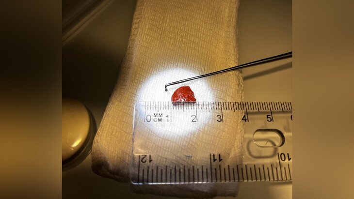 Мама девочки пыталась сама достать камень из носа ребенка, но протолкнула его глубже, поэтому без помощи врачей не обошлось. Инородный предмет был извлечен при помощи эндоскопического крючка.