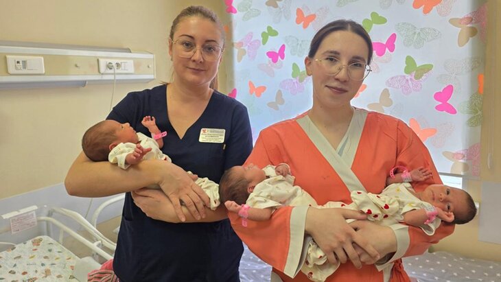 На свет появились три девочки весом 1 730, 2020 и 1 480 граммов и ростом 39, 43 и 40 сантиметров. За их состоянием специалисты наблюдали более месяца. Сейчас вес сестер достиг уже 2 532, 2 871 и 2 292 грамма соответственно. Мать и ее дочки чувствуют себя хорошо, их уже выписали из медучреждения.