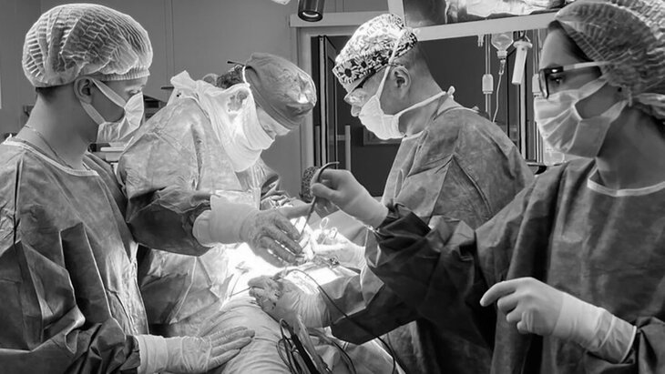 Во время операции присутствовали несколько бригад опытных анестезиологов, неврологов и кардиологов. Несмотря на возникшие сложности, ее успешно провели всего за три часа с минимальной кровопотерей и удалили опухоль единым блоком.