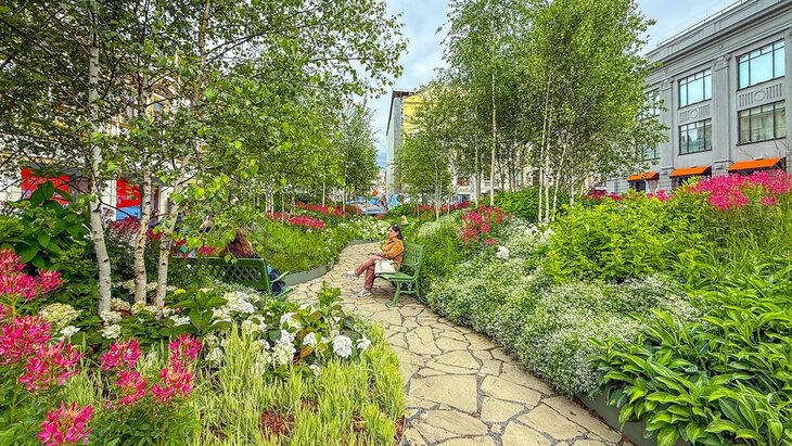 Кроме того, свыше 70 столичных локаций были превращены в сады с прогулочными и лаунж-зонами. Цветочные композиции украсили также Манежную и Болотную площади, лестницу Российской Государственной библиотеки, Новый и Старый Арбаты, Тверскую улицу и Кутузовский проспект.