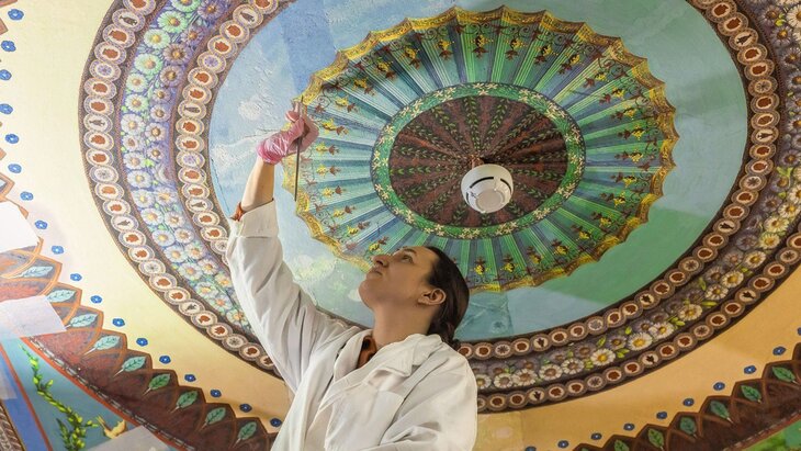 "Работы выполняют по историческим технологиям XVIII века. Например сейчас реставраторы прилагают все усилия, чтобы сохранить уникальные бумажные обои 1790-х годов, напечатанные во Франции. Для этого их даже сняли со стен", – поделился глава города.
