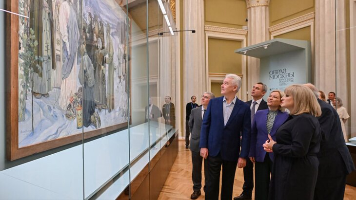 Сергей Собянин и министр культуры России Ольга Любимова открыли в павильоне № 1 "Центральный" на ВДНХ выставку "Образ Москвы в русском искусстве из коллекции Государственного Русского музея".