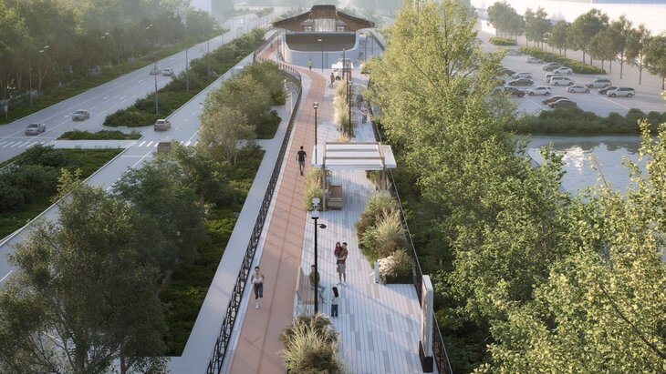 Он также указал на то, что будет создано современное комфортное пространство для занятий спортом, семейного отдыха и встреч с друзьями. Вдоль парка будет сделана беговая дорожка с движением в обе стороны, ее длина составит 4 километра.