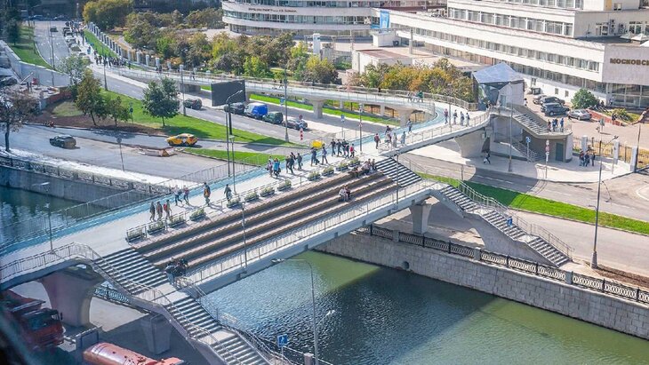 Год назад пешеходный мост через Водоотводный канал связал стрелку у острова Балчуг с Крымской и Якиманской набережными. В 2024 году собственный велопешеходный мост через Яузу появился у учащихся МГТУ имени Баумана. Его особенностью является амфитеатр с видом на реку.