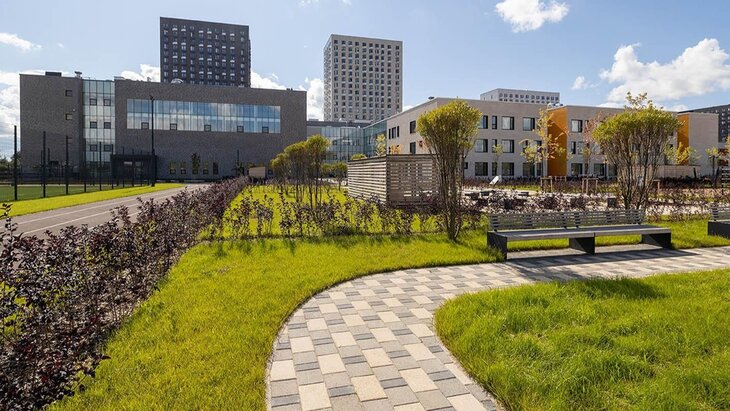 Территория школы была украшена растениями и оборудована спортивным кластером, продолжил Собянин. Здесь есть зоны для прыжков, бега, игр в волейбол, баскетбол и футбол, а также места для тихого отдыха и занятий по ботанике.