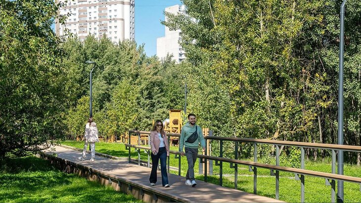 "Все дорожки и покрытия выполнены из экологичных водопроницаемых материалов, на детских и спортивных площадках – покрытие из древесной коры, что помогает снизить нагрузку на природную территорию", – добавил Собянин.