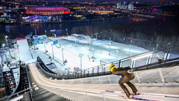 Мэр МосквыСобянин объявил об открытии лыжного трамплина на Воробьевых горах