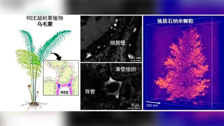 По словам ученого, папоротник действует как "пылесос" для редкоземельных металлов. Он поглощает и концентрирует их из окружающей среды, после чего элементы оседают в виде наночастиц и кристаллизуются в редкоземельные фосфатные минералы.