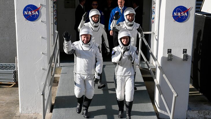 На борту корабля Crew Dragon находились астронавты Зена Кардман, Майк Финк, Кимия Юи и представитель "Роскосмоса" Олег Платонов.