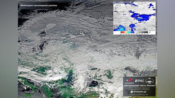 Наука"Роскосмос" показал циклон, принесший снегопад в Москву 24 февраля