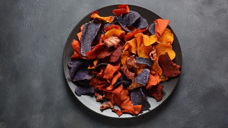 В это же время данный снек не может заменить собой обычные овощи, которые нужно употреблять ежедневно. Несмотря на то что овощные чипсы делают из свеклы, батата, кабачка или моркови, они содержат природные сахара. Кроме того, сушеные овощи являются источником большого количества калорий, так как из них удалили всю влагу.