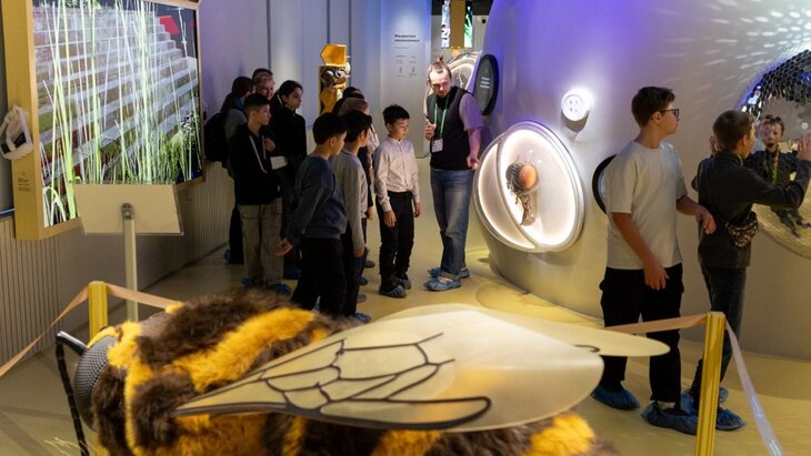 Рядом с моделями установлены VR-очки, позволяющие гостям посмотреть на "Жужжащий мир" глазами пчелы. Однако сотрудники рекомендуют с осторожностью использовать этот медиа-формат людям с проблемами вестибулярного аппарата.