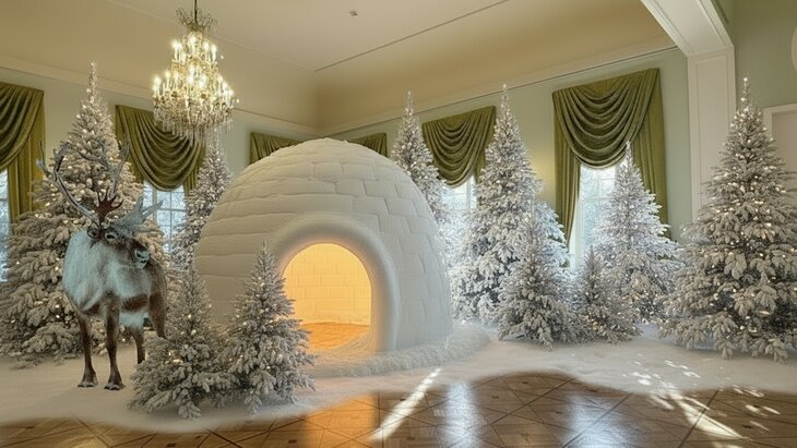 Перед началом спектакля пространство Колонного зала превратится в атмосферу Арктики. Детей и взрослых ждут ледяные фотозоны, снежное иглу, тематическое кафе с северными угощениями, праздничная ярмарка. На парадной площади развернутся гуляния с артистами-акробатами, ростовыми персонажами и настоящими санями Деда Мороза, которые будут катить по кругу под веселое настроение зрителей. Особенным моментом станет встреча с 12 традиционными российскими Дедами Морозами из разных регионов России – от Калининграда до Камчатки.