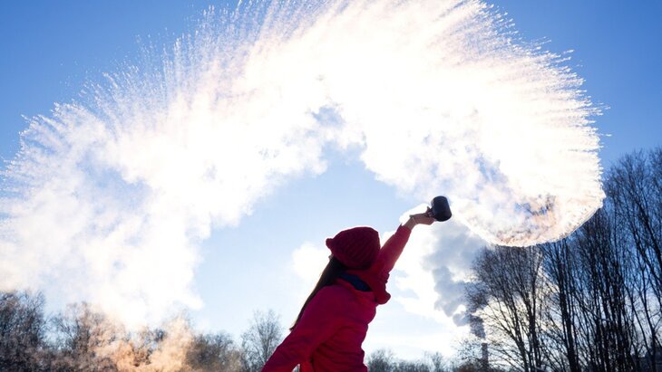 В соцсетях стал набирать популярность опасный тренд с разбрызгиваем кипятка на морозе