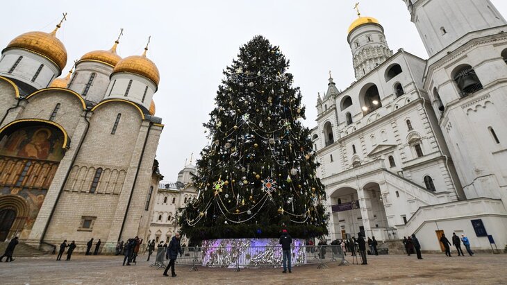 ОбществоГлавную новогоднюю елку России украсили в Кремле