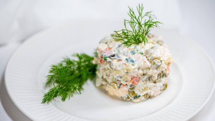 Классический оливье может привести к набору веса, предупредила в разговоре с Москвой 24 врач-диетолог, доктор медицинских наук Марият Мухина.