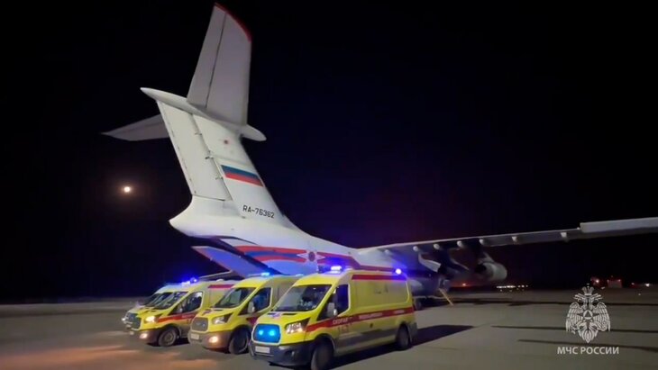 Уточняется, что на борту находятся врачи отряда "Центроспас" МЧС России, психологи Центра экстренной психологической помощи ведомства, а также специалисты Минздрава России.