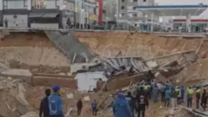Обрушение горной породы произошло вблизи заправочной станции Mobil в районе Эт-Тагаммоа. ЧП спровоцировало образование 15-метровой воронки, что и привело к разрушению цветочного и кондитерского магазинов, расположенных на территории станции.