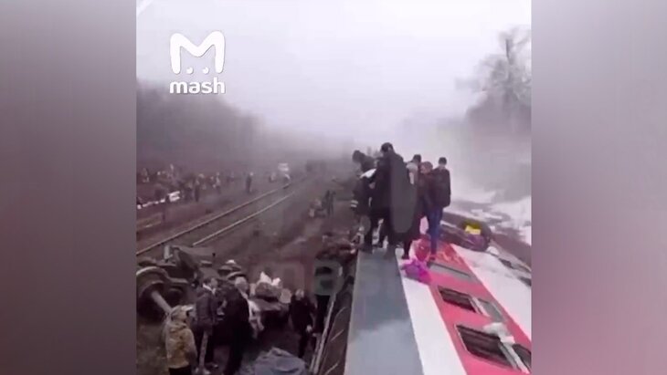Как рассказали [SOURCE9]ТАСС[/SOURCE9] в оперативных службах, вагоны опрокинулись набок, и пассажирам пришлось выбираться из поезда через окна.