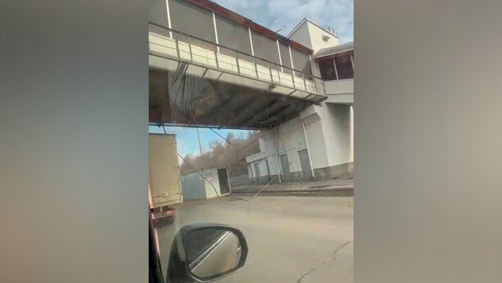 ПроисшествияКран-манипулятор с поднятой стрелой врезался в пешеходный мост на МКАД
