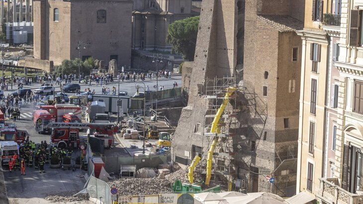 Часть исторической башни обрушилась на Императорских форумах в самом центре Рима 3 ноября. Архитектурное сооружение находилось на реконструкции.