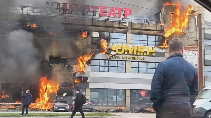 Возгорание произошло днем в воскресенье, 5 апреля. По предварительным данным, площадь пожара превышает 1 тысячу квадратных метров. Огонь перекинулся на машины на парковке. Посетителей эвакуируют.