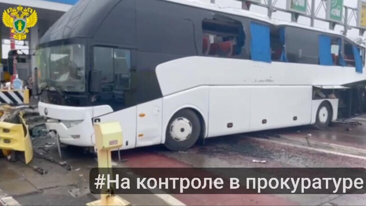 ДТП произошло утром во вторник, 5 августа, на 228-м километре трассы М-4 "Дон". Автобус столкнулся с опорой на пункте оплаты на трассе в Киреевском районе.